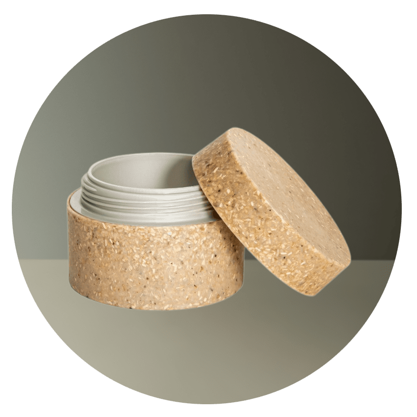 50 ml Arctic Frost. Rondvormige premium duurzame cosmetica creme pot. Gemaakt van patenteeerde dubbelaags bio-based Sulapac Premium (SUL-P) structuur met HK nek afwerking. Collectie Arctic Frost is een hoogwaardige recyclebare en composteerbare verpakkingsoplossing voor cosmetische toepassingen op waterbasis. Buitenlaag heeft grote zichtbare houtsnippers in het oppervlak. Afmetingen: (D x H) 47 mm x 65 mm en een gewicht van 71 gram.